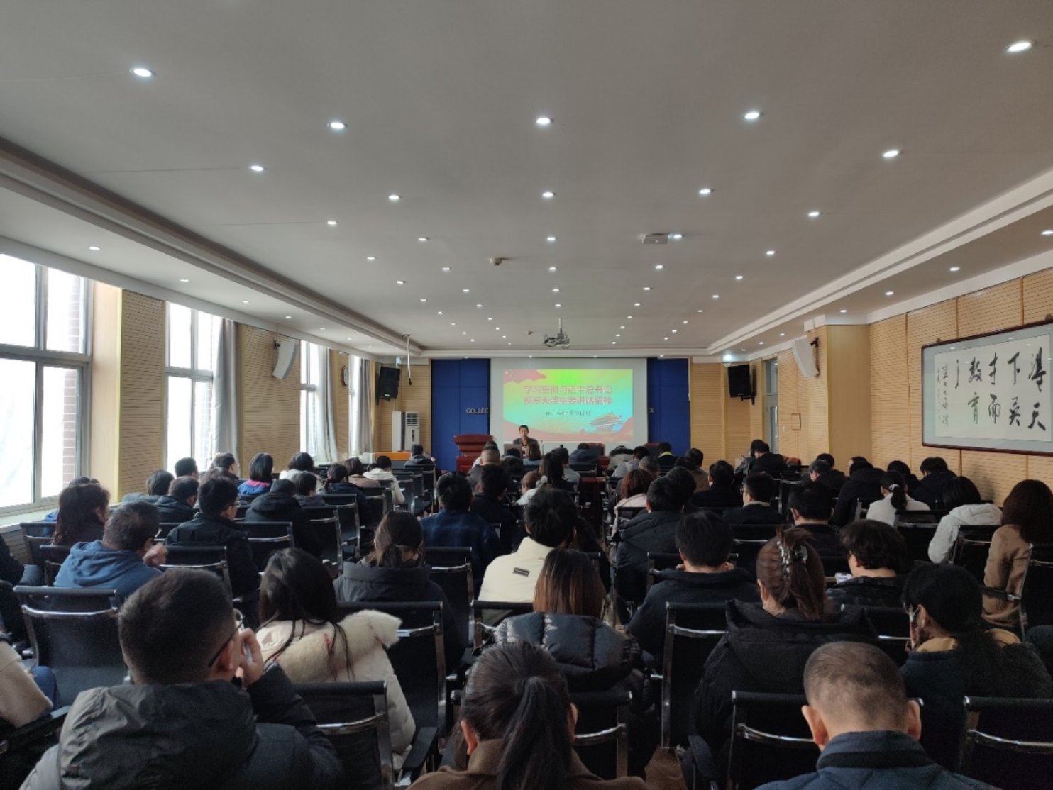 化工与材料学院党委把学习宣传贯彻习近平总书记视察天津重要讲话精神作为当前和今后一个时期的首要政治任务,学院领导干部带头学习、带头宣讲,3月7日中午13:00,学院党委书记崔永岩在滨海中校区8号楼B203会议室带头为学院全体教师宣讲习近平总书记视察天津重要讲话精神,号召大家要深刻领会把握精髓要义和实践要求,牢记嘱托、勇担使命、开拓进取。