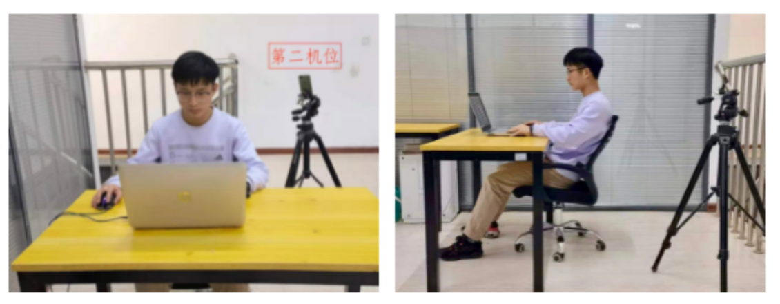 (二)考生按照监考老师指令,逐一手持身份证在镜头前展示,并展示诚信复试承诺书个人签字部分、空白答题纸。考生360°缓慢旋转摄像头展示周围环境,确保复试期间无相关书籍物品和其他人员,否则将取消复试资格。