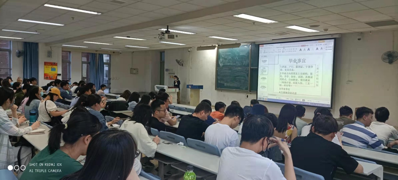 同时,年级会议上,辅导员具体讲述关于找到工作的同学所需的重要物品,讲解了党团关系如何操作,同时对于二战的同学也给予了指导。最后,辅导员对同学们的安全、疫情防控等进行了关怀。