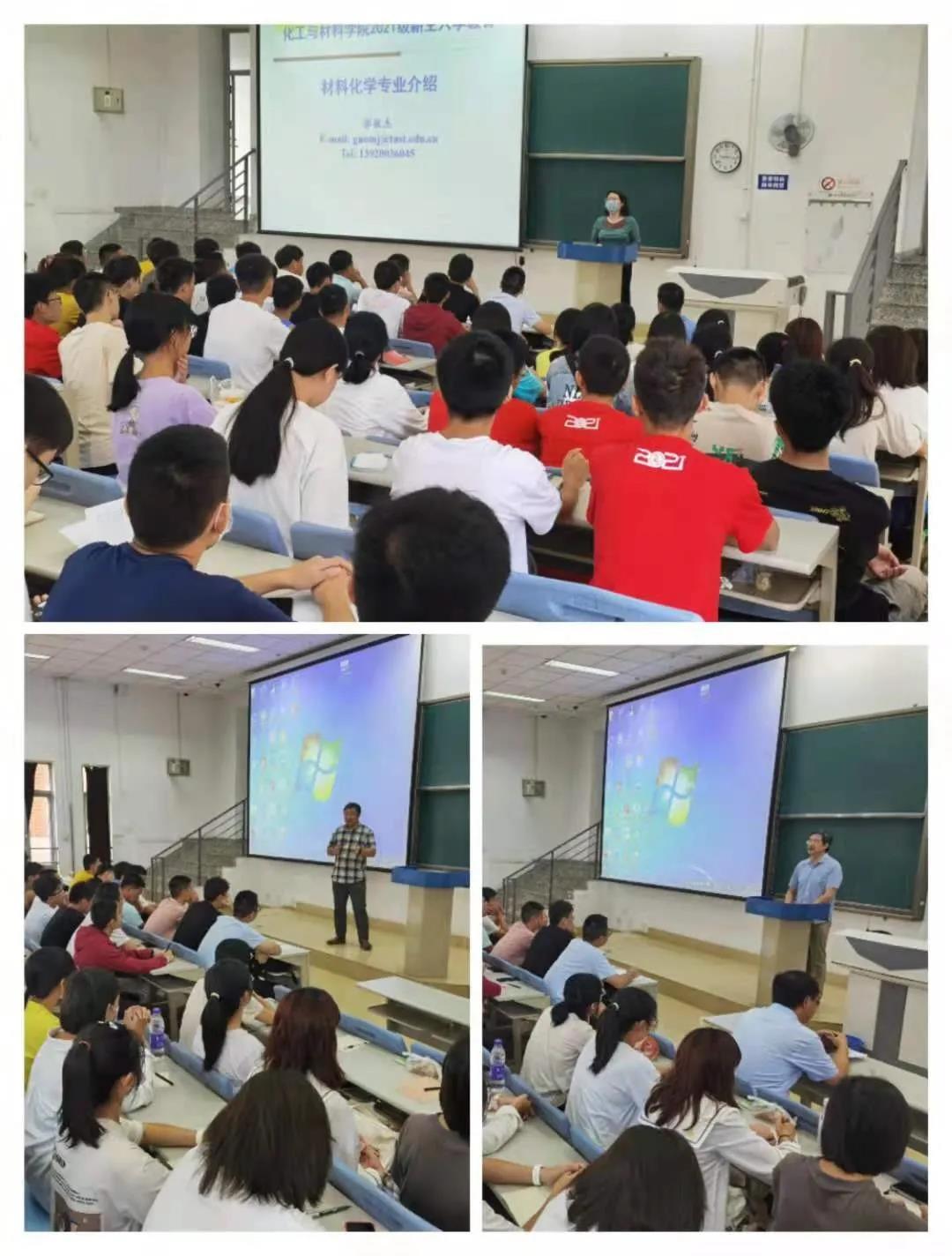 材料系主任曾威、副主任郭敏杰老师、化工系主任吕树祥、副主任张晨曦分别介绍了高分子材料与工程、应用化学、化学工程与工艺、材料化学专业专业发展、专业教学计划、培养目标和毕业要求等,让同学们对学习内容与方法、未来就业等都有更清晰明确的认知。
