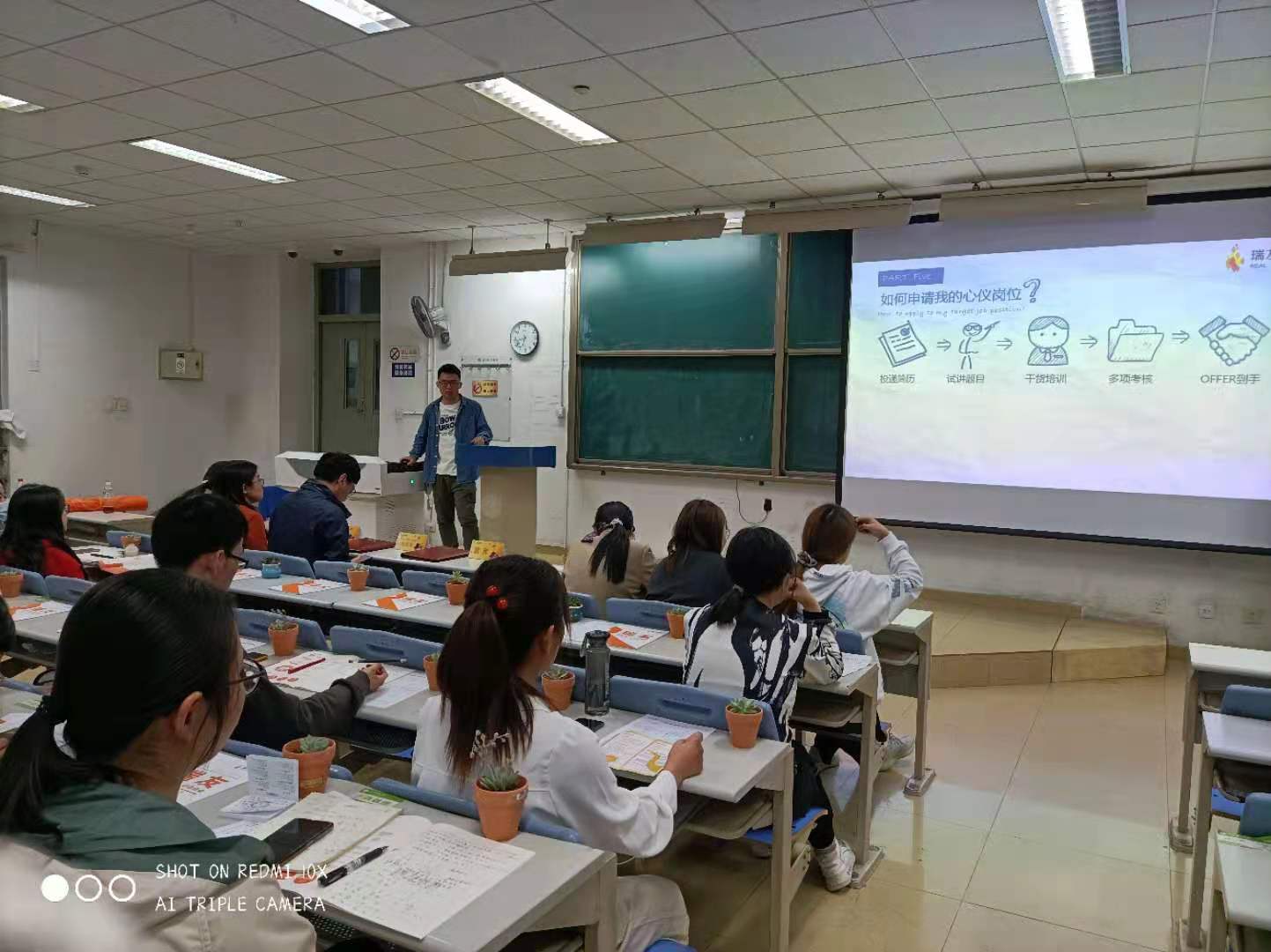 招聘会上,瑞友教育负责人通过PPT放映、学科组长介绍、现场答疑等方式为同学们介绍了公司概况、福利待遇、招聘岗位、人才培养计划等信息。公司的理念以及星点人才计划、未来发展前景等无不吸引着同学们的注意。宣讲结束后,进入自由提问环节,面对同学们的热情提问,瑞友教育人力资源总监、高中化学学科组长、校招主管给予了全面周到的解答,现场气氛热烈。会后,瑞友教育进行了现场面试,每位同学都向公司展示了自己最佳的状态。