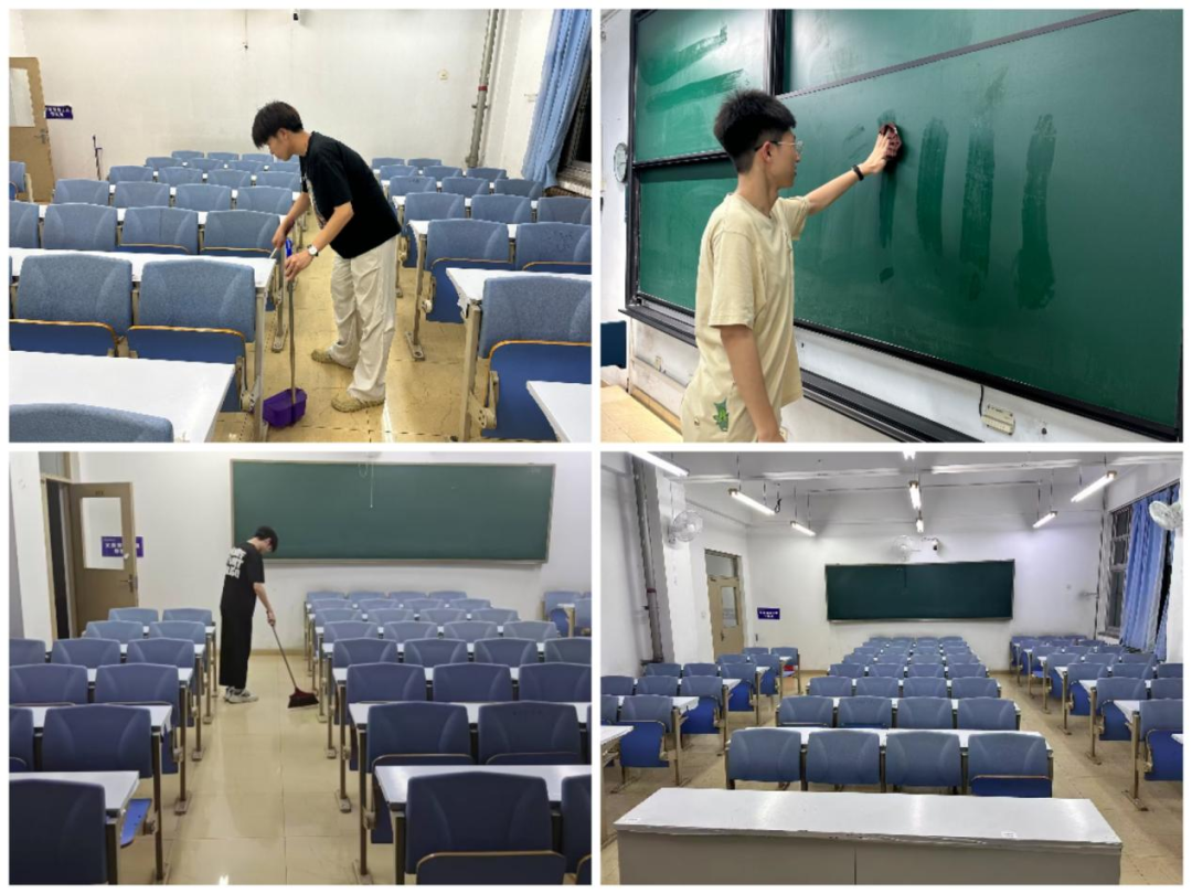 开学伊始,化工与材料学院组织学生们走进教学楼、图书馆开展卫生大扫除,同学们纷纷投身于劳动实践活动中,手持各种劳动清洁工具,以高昂的热情、高效的速度对义务劳动公共场所区域进行清扫。同学们在劳动实践活动中分工明确、互帮互助,将教学楼、图书馆的黑板、地面、桌椅等清扫干净,为同学们开学第一天营造干净、整洁的学习环境。