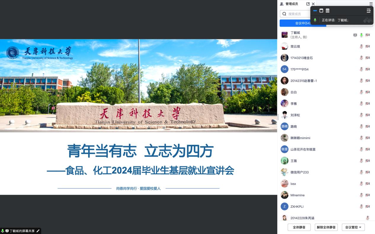 为引导毕业生扎根基层、服务基层,到祖国需要的地方建功立业。3月24日,化工与材料学院联合食品科学与工程学院于线上举办以“青年当有志 立志为四方”为主题的基层就业宣讲会。此次由食品科学与工程学院2023届本科毕业生简云琪(“西部计划”志愿者)、孙淼(社区工作者),以及2023届硕士毕业生刘泽松(选调生)担任主讲嘉宾,活动共有80余名同学参加。