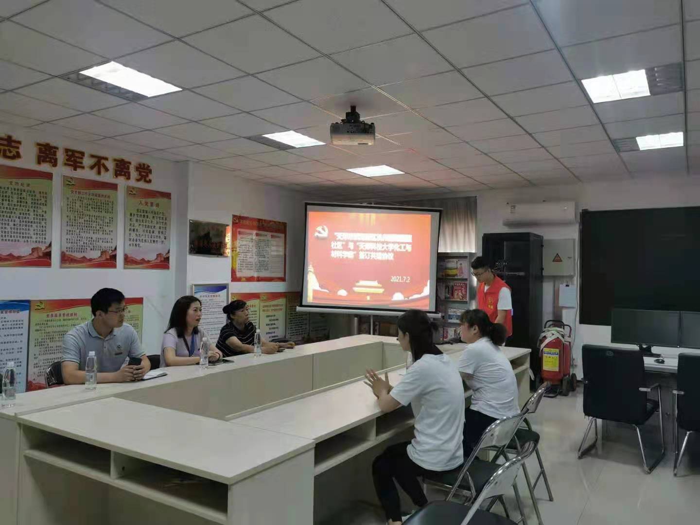 随后,刘少华与天津市滨海新区杭州道新园里社区主任罗丽健就支部建设、学生志愿活动、劳动教育等内容进行深入交流。罗丽健主任充分肯定了学院学生实践团的工作,期望通过共建实践育人基地,多渠道促进学校与社区合作交流途径,为学生社会实践提供更多机会。